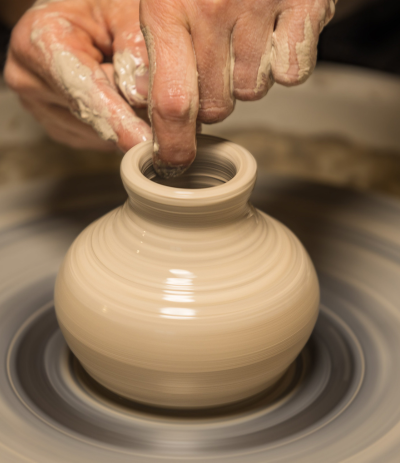 Artisans give the clay the desired shape by moulding it either by hand or on a potter’s wheel.